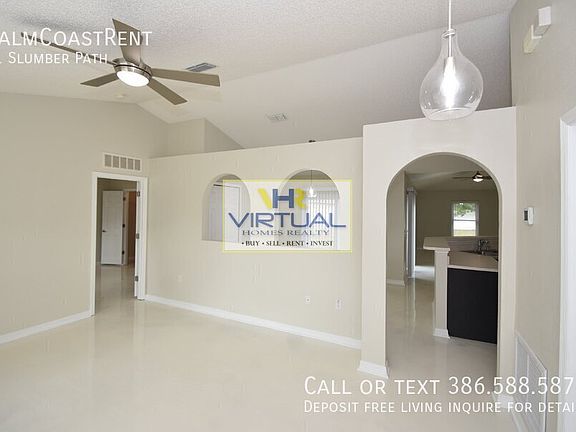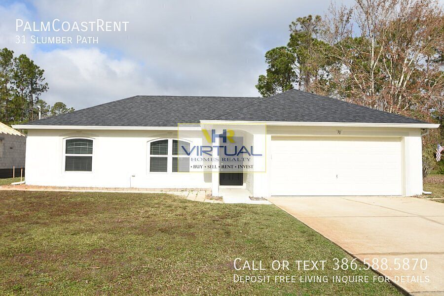 Unveiling 31 Slumber Path, a serene sanctuary nestled in Seminole Woods, Palm Coast, FL, where comfort meets coastal charm. New windows are brand new. Unique flooring throughout. This delightful three-bedroom, two-bathroom home offers 1,535 square feet of inviting living space, perfect for creating cherished memories. As you step inside, you'll be greeted by an open and airy floor plan that seamlessly connects the living, dining, and kitchen areas, making it ideal for both relaxation and entertaining. Each bedroom is designed with tranquility in mind, providing ample space for restful nights and peaceful mornings. The full bathrooms are thoughtfully appointed, ensuring convenience and ease for your daily routines. Located in a friendly neighborhood, this property offers a harmonious blend of privacy and community spirit. The lush surroundings and gentle sea breeze create an atmosphere of perpetual vacation, encouraging leisurely walks and outdoor enjoyment. With its prime location, 31 Slumber Path provides easy access to local amenities, shopping, dining, and the beautiful Florida coastline. Embrace the opportunity to make this charming house your next home, where every day feels like a getaway. Learn more about the benefits of deposit-free living here: pdfBedroom 2 Bedroom 3 Kitchen Laundry Closet