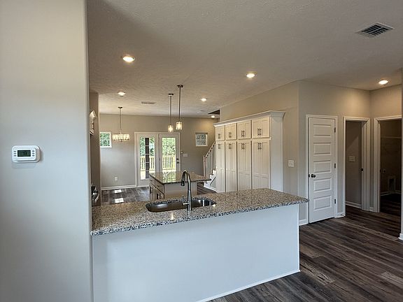 Bonus room upstairsPantry in the kitchenMaster bedroom downstairsCovered back porch