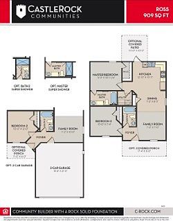 Are you looking to downsize or secure a starter home? The Ross plan is perfect for you! Entering the Ross home, the foyer leads you to the secondary bedroom and bathroom and allows for the option to upgrade the shower to a super shower. Across the hall is your dining area that flows seamlessly to the state-of-the-art kitchen. Your kitchen consists of designer light fixtures, industry-leading appliances, a convenient breakfast bar, and overlooks the family room, giving the area an open and comfortable feel. In the family room, you have access to the optional covered patio. Back inside, the walk-in utility room and master suite await. The master bedroom suite has an expansive walk-in closet and master bathroom that gives you the option to upgrade the tub/shower combination into a super shower for added luxury. If you're needing more storage space, you can choose to add a two-car garage. The Ross is the perfect plan for you, no matter what stage of life you're in! Buyers can also take advantage of $10,000 Towards Closing Costs. Community is also USDA eligible, offering $0 down programs