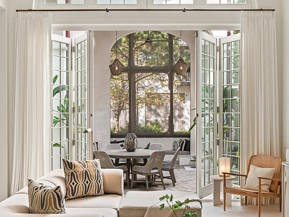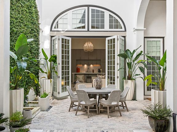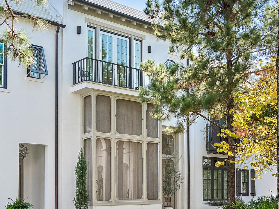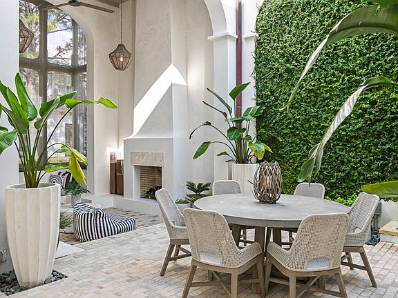 Custom-designed by Khoury Vogt Architects, this Alys Beach home overlooks the quiet greenspace of Arboleda Park and combines architectural detail with everyday livability. A two-story vaulted loggia with a wood-burning fireplace connects the private courtyard directly to the park, while bi-folding doors create a seamless indoor-outdoor flow through the main living, dining, and kitchen areas. The second floor offers three bedrooms, a bunk alcove, and multiple rooftop terraces with views of the park and the signature white rooftops of Alys Beach. Designed for both privacy and connection, the home includes a two-car garage and is ideally located between Caliza Pool, Zuma Wellness Center, and the Town Center, with convenient access to the beach via Castle Harbour Drive. Elegant design, thoughtful layout, and a rare combination of space and setting define this exceptional Alys Beach property.