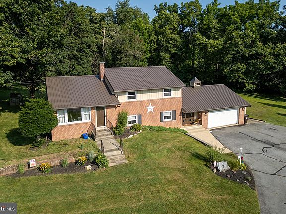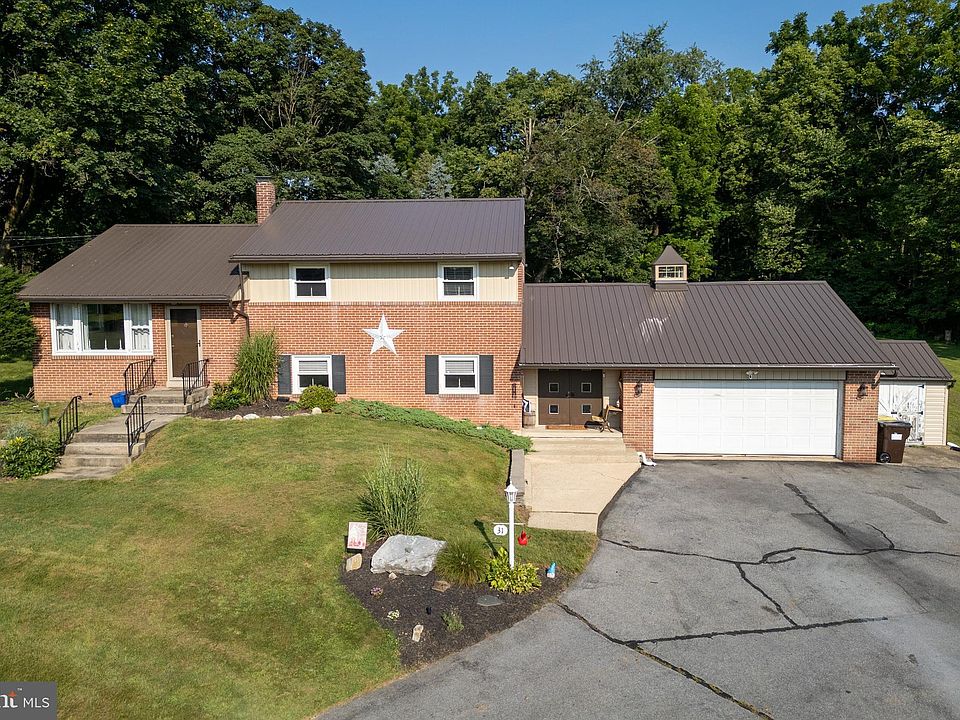 Welcome to 31 Sunset Court in Sinking Spring, a beautifully maintained home nestled on a spacious 1.41-acre tree-lined lot at the end of a quiet cul-de-sac. This inviting residence offers thoughtful upgrades and refined touches throughout. Step through the front doors into an enclosed breezeway with convenient storage and closet space, connecting the main living area to the oversized two-car garage. The expansive family room boasts shiplap accent walls, a cozy Jøtul cast iron gas stove with brick hearth, and easy access to the large backyard, screened-in porch, and a newly built 30' x 15' deck—perfect for relaxing or entertaining. A powder room is also located on this level. Just a few steps up, the kitchen features striking custom soapstone countertops, a large butcher block center island with seating, and stainless appliances including a microwave, dishwasher, and electric range. Ample cabinet and counter space make this kitchen as functional as it is stylish. Gleaming hardwood floors continue from the kitchen into the sunlit dining room, ideal for family meals or gatherings. The top floor offers three generously sized bedrooms, each with ceiling fans and hardwood flooring, along with a full hall bath and tasteful, neutral decor. The daylight basement includes laundry, mechanicals, a workspace with a desk and bench, and houses high-efficiency gas heat, central air, a water softener, and a gas water heater. Step outside to enjoy the custom fire pit area with built-in seating and a convenient storage shed. Recent updates include a new 40-year metal roof, enhancing both style and durability. This home truly offers the complete package—modern amenities, scenic privacy, and timeless comfort.
