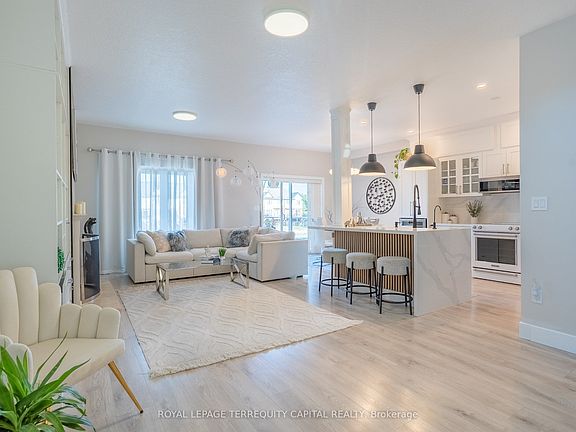 Live where every day feels like a getaway! This rare end-unit townhouse in the prestigious Waters Edge community at Newport Yacht Club offers direct marina access from your backyard - perfect for boating enthusiasts or anyone seeking tranquil waterfront living (membership required). The community also features a brand-new swimming pool built in 2025, available to Yacht Club members. Enjoy unobstructed marina views from your private deck with the potential to extend - ideal for relaxing or entertaining. This beautifully updated 2,471 sq.ft. home features a fully renovated kitchen (2024) with new cabinetry, stone countertops, a large island, and all new appliances (2023-2024) including fridge, stove, microwave, dishwasher, and wine fridge. The main floor showcases new laminate flooring, custom built-ins (2024), a cozy gas fireplace, and a striking 21-ft vaulted ceiling in the foyer. Upstairs is carpet-free with brand-new flooring, three spacious bedrooms including a primary suite with a luxurious 5-piece ensuite, a bright den, and a modern 4-piece bath. The walk-out basement offers a large family/media room, a 3-piece bath, and rough-ins for kitchen and laundry - perfect for an in-law setup. Step out to your gated backyard with direct marina walkway access. Updates include new furnace & A/C (2024), owned hot-water tank (2024), automatic garage opener, and a new garage door in progress. Over $80,000 invested in renovations. Located steps from the community's redesigned park with multi-use court and children's splash zone, close to Costco, wineries, restaurants, and the QEW. The upcoming GO Train station will make commuting to Toronto or Buffalo ( 1 hour) easy and efficient. Don't miss this premium end-unit in a sought-after waterfront community!