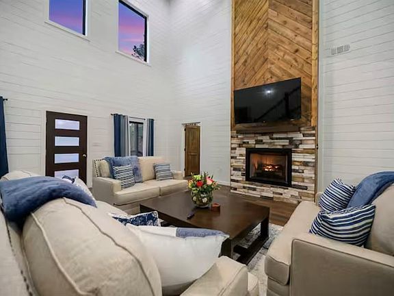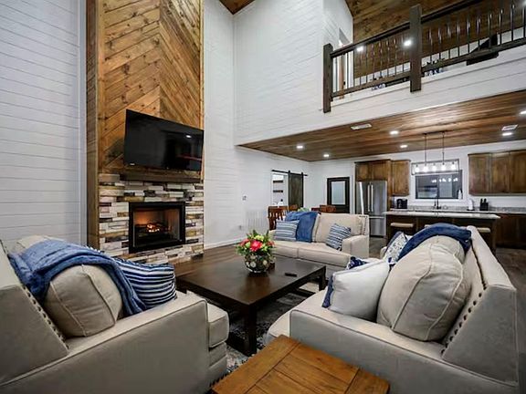 This cabin features two generous master suites, each thoughtfully designed to offer comfort and privacy. Both suites include en suite bathrooms, complete with large, custom-tiled walk-in showers and oversized soaking tubs—ideal for unwinding after a day on the lake or trails. Upstairs you will find a foosball table in the loft and an area for 2 more to sleep and another full bath. The outdoor space is fabulous, and sure to having you spend many a night out there in front of the fireplace.