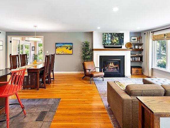 Private, tranquil, open and inviting. This meticulous, updated three bedroom, two bath home is like no other. Located close to K-12 schools and around the corner from Sharon Middle School, this property offers an oversized kitchen with granite counters, updated cabinets, stainless steel appliances & a large center island. This home has had many updates, including open concept living area and wired high-speed internet, perfect for remote work. Upper level includes a fireplaced living room and sunny den/home office with walls of glass. French doors separate bedrooms from the rest of the home. Gleaming hardwood floors throughout home. Impressive lower level includes playroom, laundry and storage rooms, access to garage and a bonus room. Enjoy your backyard oasis with immaculate grounds, a deck and a patio. Sharon offers a fast commuter train to Boston/Providence, a new high school, gorgeous Lake Massapoag, Borderland State Park and Moose Hill Wildlife Sanctuary for your outdoor enjoyment.