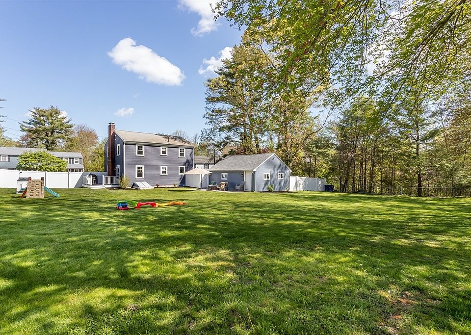 This is the One! Classic colonial in one of Braintree's most desired locations. Immaculately maintained with a large 2 car garage and manicured 15,000 sq ft level lot. Walk up the brand new stairs up to the center entrance and a comfortable and traditional floorplan. Front to back fireplaced living room with door to the composite deck and the fully fenced yard with patio and lush green grass and landscaping. Formal dining room with hardwood floors, wainscoting and bright and sunny kitchen and half bath round out the first floor. Huge 23 ft primary bedroom with double closets, large additional bedrooms with ample closet and updated baths. New Washer/Dryer, Fridge, Boiler, front steps, fencing, entire interior painting and interior doors throughout are just a few of the recent updates! Simply too much to list. Showings being Saturday 5/18 at the Open House 11 am. Run, don't walk to this one!
