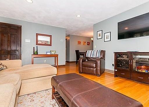 Classic Hicks ranch meets Pottery Barn design. Move right into this modern, updated and sparkling three bedroom home. Set back off street for maximum privacy, this well taken care of home has lots to offer. Hardwood floors throughout the first floor. New appliances and countertops in the kitchen. A great mudroom/office area off of kitchen for maximum efficiency. Open dining room and living room with great bay windows and a lovely fireplaced wall. Three good size bedrooms and bathroom complete this floor. Downstairs, a great playroom or family room depending on your needs with new carpeting. A guest bedroom with full bath is a wonderful plus to the home. The seller has kept this home maintained and updated along the way. You will be able to move right in and enjoy the wonderful fall season in New England. Top notch schools, easy access to the highways. This house won't last.