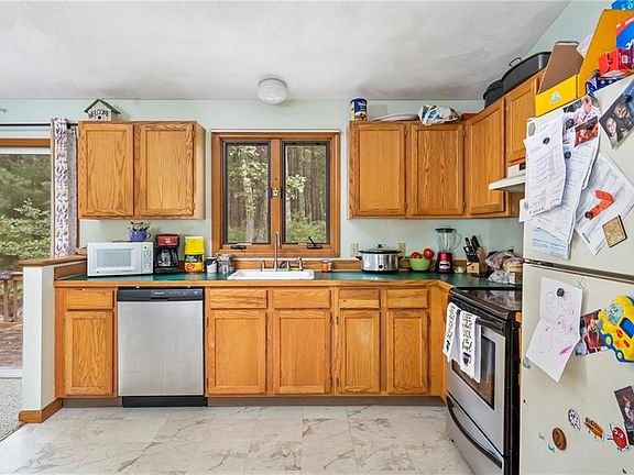 Contemporary Style Raised Ranch , in Country Setting near Tiogue Lake. Brand new roof, Maintenance free vinyl siding and 1 year old boiler. This home features an Open Floor Plan for Kitchen-Dining and Living Rooms with Cathedral Ceilings. 3 Beds and 2 full Baths. Very large Custom heated lower level can be used as playroom, office etc. Additional utility room and unfinished storage area in basement. Home set on just under a half acre with lots of privacy. Secluded enough to go Trail Running or taking an easy hike to the Lake while still being close enough to City Amenities, including Center of New England. Easy Highway access.