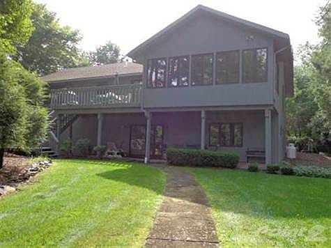 Inviting Contemporary Lakefront with cathedral ceilings open floor plan with dining, kitchen and living area, with fireplace and stunning hardwood floors. Added touch is a all window enclosed sunroom with great views of the lake. This home offers 4 bedrooms and 3 baths. Finished lower level has family room, bedroom and full bath as well as a laundry area and work shop/storage room. Attached oversized 2 car garage completes the picture. Wood dock allows you to enjoy the lake to sit or fish from your lakefront. Emerald Green offers clubhouse, pool, tennis courts and basketball court.
