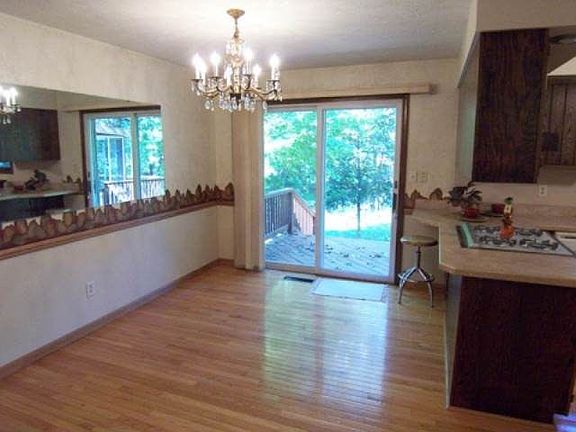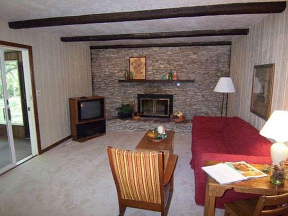 Huge Value! Impressive surroundings: mature trees, creek, lake. No backyard neighbors. Natural stone fireplace & huge 3 season room. New flooring-new water shutoffs-new kitchen countertops. High efficiency furnace and A/C plus R-40 & R-16 insulation. Low electric & gas bills. Radon mitigation system in place. Near Indian Creek Golf & CC.