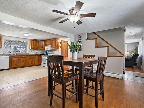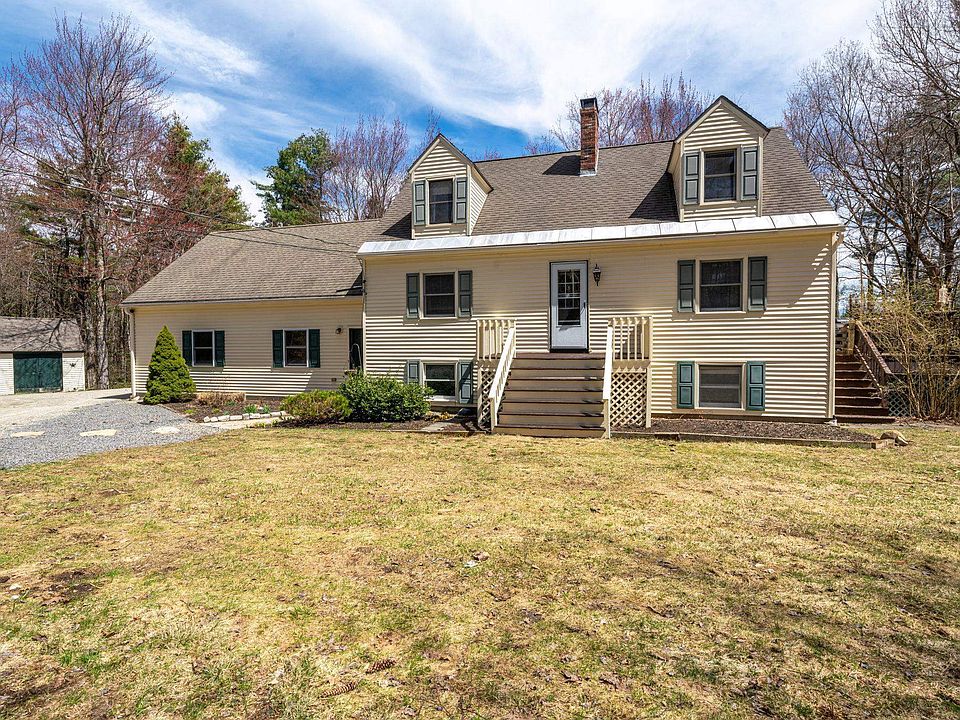 Discover this meticulously cared for 3-bedroom Cape tucked away on a tranquil cul-de-sac in Temple, NH, enveloped by over 3 acres of peaceful land. The open design of the first floor creates a welcoming atmosphere, perfect for gatherings with loved ones, whether it's dining, relaxing, or enjoying various activities. Granite countertops grace the kitchen, complemented by ample cabinet space. Embrace the cozy comfort of the wood stove, ensuring snug winters in New Hampshire. Step through the French doors from the living room onto the expansive two-tiered deck and soaking in the picturesque surroundings. Attached awning provides shelter from the sun's rays. Upstairs awaits a spacious master bedroom spanning from front to back, complete with an oversized closet and charming window seat. Two additional bedrooms and a full bath offer ample accommodation space. The expansive two-car garage, perfect for car enthusiasts, also features a walk-up second floor with endless possibilities. Don't miss out on the opportunity to experience this extraordinary property firsthand—schedule a showing today! Showings begin at Open House, Friday 4:30-6pm.