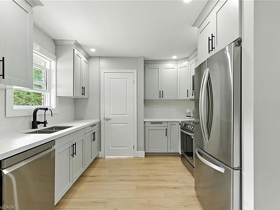 Beautifully renovated 5-bedroom, 2-bathroom bungalow in Brantford’s highly desirable Greenbrier neighbourhood. This modern home is move-in ready, with stylish upgrades including sleek quartz countertops, stainless steel appliances, pot lighting, and a carpet-free design throughout. The main floor offers three spacious bedrooms and a bright open layout, while the fully finished basement doubles the living space with a separate entrance, full kitchen, two bedrooms, and in-law suite or rental potential. Perfect for families seeking flexibility or investors looking for income opportunities. Outdoors, enjoy a private backyard oasis featuring a concrete patio, gazebo, and mature trees—an entertainer’s dream. With a wide 67-foot lot and plenty of parking, this home combines comfort, convenience, and opportunity. Close to schools, shopping, and transit.