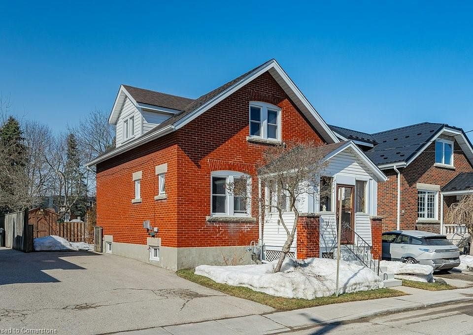 Tremendous value with a detached home on a beautiful lot at this price! Charming detached, red brick, 1 1/2 storey home located near Exhibition Park! Three beds upstairs and one full bathroom. Main floor boasts hardwood floors, original 10” baseboards and trim along with original doors throughout (all Douglas Fir solid wood). It has all of the principle rooms you need - kitchen with island, formal dining room with sliders to backyard, and living room with beautiful fireplace. Very spacious backyard that includes an elegant garden with a fully fenced yard. This home is easy walking distance to Exhibition Park and downtown Guelph. Perfect for first-time home buyers and young families alike.