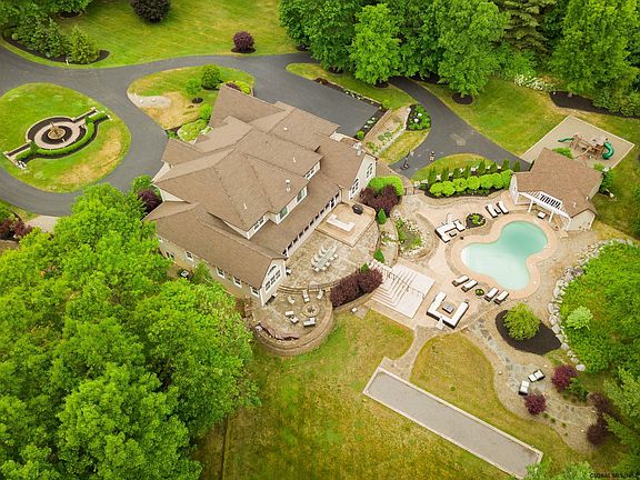Welcome to this spectacular property tucked away in a private 100 acre oasis, only five homes on the road and all beautiful. The estate itself has three very livable levels, two apartment suites, expansive first floor master suite, additional bedroom en-suites, a total of four kitchens, one is a special dietary or chefs kitchen for gatherings, three fireplaces, open concept kitchen, authentic movie theater with custom surround sound, lovely pool and pool-house, acres of groomed grounds and perfect for anyone looking to be near the airport, land a helicopter, or hide away for days without hearing another car. Great for entertaining with it's large rooms, 20 foot ceilings, grand dining room and laundry on every floor. A custom estate, hard to find, but we found it, and now it can be yours!