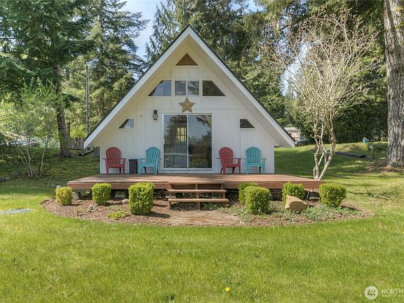Experience the tranquility at this unique property on Star Lake!! Timeless A-frame cabin is completely updated & includes a separate 12x16 structure that provides more living space and/or sleeping space w/cadet heater. Cabin boasts beautiful hardwood floors, tongue/groove ceilings, and butcher block counter tops in the kitchen. Some of the updates include new roofs, electrical panel, hot water tank, new septic system, fresh paint, landscaping, & French doors. Sitting on a large lot with plenty of space for a trailer or RV parking w/additional storage shed. Star Lake Community includes a private 6 hole golf course, boat launch, clubhouse, & water all included by low HOA dues. Located in Mason County and only 11 mile drive to Elma & Shelton.