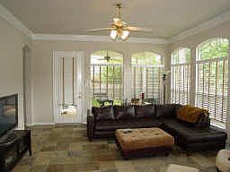 Charming home on corner lot! Front porch overlooks park & community green (peaceful, natural view). Rear alley access to garage reduces traffic at front door. HOA-provided lawn service outside fence; sprinkler system; minimal yard upkeep. Recent upgrades include A/C units, water heaters, paint, & carpets! Slate tile, engineered wood, high ceilings, crown moulding, open floorplan. Detached garage apartment perfect for guests or older kids: 3rd bed/bath, kitchenette, storage. Details in photos!