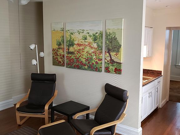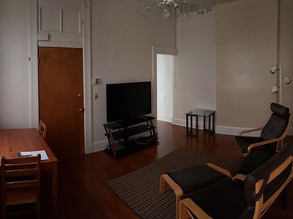 The kitchen has all you need. With new granite counter tops and fresh cabinets it is easy to be kept clean. Hardwood floors throughout the living area and the large bedroom make for a neat and clean apartment. Free washer and dryers are in the basement and shared by the three apartments in this house.