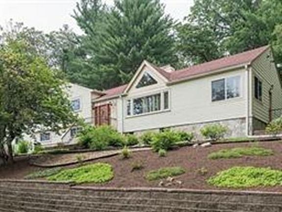 Rare to market spectacular renovated waterfront home in a prime estate area. This is a 13 rms 5+ bdrms 3 bths custom built 4426 sf contemporary home surrounded by park like grounds fronting Walker Pond 2 miles from Needham Ctr House was rebuilt expanded in '10-'15 . Open flr plan dramatic entertaining spaces cathedral ceilngs in LR & MBR suite. Picture windows, wood burning FP's. High end EIK, Master suite of royal proportions with 2 rms, 3 exposures, a spa like bath and 2 decks. MBR suite and 2 bedrooms all on main level. 3 car garage, deck, patio, prof lndscpd frnt yard Incredible water views. High end fixtures finishes&systems. Infinity, Buderos, SS oil tank, the whole hse water filtration system. Impecably maintained. Flex flr plan ideal for a growing/multi generation family, au-pair, home offices. The ultimate privacy: no neighbors within the view in the back & in the front. Dead end str Walk to Temple and waterfalls Close to commuter train & a new walking trail to Needham Ctr