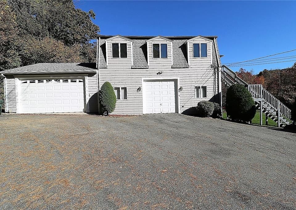 There are many possibilities here. It's a great opportunity for a first-time home buyer(s); for someone who wants to set up an in-law arrangement, or for an investor looking to rent out an apartment and storage space. Whatever way you decide you can't go wrong in one of the most sought-after areas of Rhode Island.......The town of Smithfield. Nestled on a little over 1 acre of land this atypical arrangement could be what you've been looking for. It's a two-bedroom, one-full-bath, single-family home with a wrap-around wooden deck and living arrangements above a massive two-car garage (10' ceilings). An additional single-car garage is attached as well. There's a large living room with hardwood flooring and an open floor plan concept for the central living area. The living quarters could possibly be expanded due to a three-bedroom design septic system that was installed by the owner. How you decide to do this is up to you and your due diligence. But, definitely come by to see which way makes sense to you. The home has a newer 150 AMP electric service and panel; the well's pump was replaced in 2018; the air handler and condenser were replaced in 2018; the sprinkler system was upgraded in 2018 and they added a new timer for it in 2019; the heating system and hot water tank are newer; a new garage door was added, both garages are heated; there's a great roll-down awning for the deck; attic storage available, on and on. Let's get you in here and we can talk more about it!