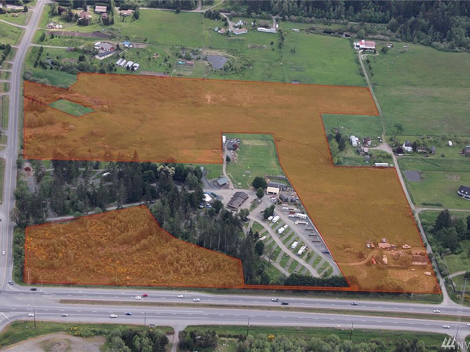Unique property, great development potential, split zoned. All one parcel, but 4.03 acres zoned RNC commercial, cleared of larger trees, highly visible & flexible comm'l uses, right on Highway 101 E. & O'Brien Road, 450 feet Hwy frontage. Remaining 21+ acres RCC3 residential, possible to develop into 8 parcels. Total parcel surrounds KOA Campground. Primary value in land but has 1926 2br 2ba home currently rented. Recent appraisal. Some water runoff from hwy & O'Brien Road.