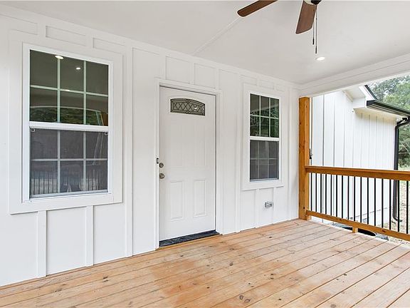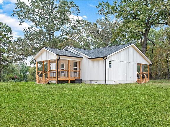 This home has a open kitchen, dining area and living room. Vaulted ceilings with paddle fan make this a comfortable space to enjoy after work and for entertaining guests. The master bathroom has dual sinks with separate vanities. A large glass shower with 3 separate shower heads. Walk in closet plus closets in each bedroom. There is a small bar area by the back door that leads out to a nice covered deck to look out over the backyard. The concrete driveway has a large parking area next to the side of the house. The one acre lot is fenced in the backyard for the kids and pets to play.