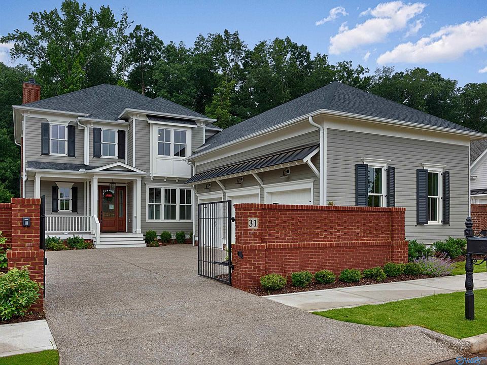 Stately 2-story home with traditional brick motor court welcomes owners & guest while providing privacy. The light filled 2-story foyer flanked by dining/office will draw you into a wonderfully planned great room, kitchen, & dining space that flows out to a generous covered porch with fireplace and a private wooded view. Master suite features vaulted ceiling, huge walk-in closet with custom wood built-ins & direct access to laundry, free standing soaking tub, large tile shower, & more. Second Guest bedroom on main level. Upstairs find 2 bedrooms each with full bath, an incredible bonus with ceiling beams & large deck for walkout to treehouse experience.