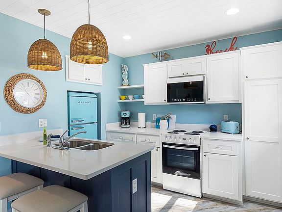 This charming cabin with stunning lake views creates the perfect getaway! When you can't make it to the beach, The Seahorse Cottage gives you the best of both worlds! Discover your dream retreat in this completely remodeled cabin, perfectly positioned to offer breathtaking panoramic views of the lake. This turn key home boasts an array of high-end features, including elegant Quartz countertops, painted custom Beech cabinets, and a shiplap ceiling in the kitchen with a retro Galanz fun refrigerator! The luxury vinyl plank flooring ensures durability and ease of maintenance. Step inside to find all-new bedding, furnishings, linens, and decor, making your transition seamless. The property is ready for you to relax and enjoy from day one. As part of a well-maintained condominium community you'll have access to fantastic amenities, including an outdoor pool, community pavilion, and two cozy fire pits - ideal for creating lasting memories with family and friends. For added convenience, laundry access is also available, and condo association takes care of grounds maintenance and lawn care allowing you to focus on what truly matters, unwinding and enjoying your time off. Don't miss this opportunity to own a piece of paradise!
