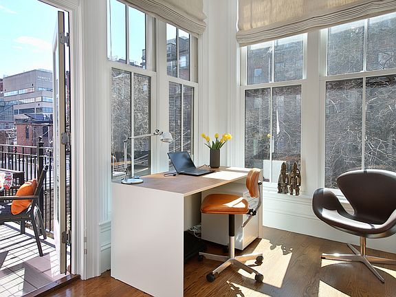 This stunning 2014 New Construction Parlor and above home is better than new. 3 beds, TWO (2) PLUS/STUDY areas, two parking spaces and large private deck. Wide open parlor level offers ~12FT ceilings as well as kitchen, dining and living areas with gas fireplace and two 8FT windows overlooking the fountain and square. Sprawling white designer kitchen with counter seating for 5-7 people offers professional grade Thermador appliances and wine fridge. King-sized master suite with walk-in closet and spa-like bath features step-in shower with body jets, floating double vanity, wall hung toilet and heated floors. Two guest beds are serviced by a large guest bath with tub shower. W/D and central AC complete this special offering. Worcester Square is a quintessential tree-line street with a working fountain, neighborhood block parties and is only steps to Flour Bakery, Toro Restaurant and SOWA. A perfect family home or entertainer's dream.