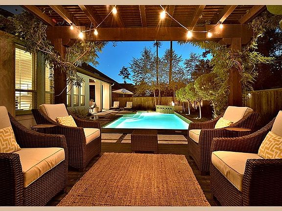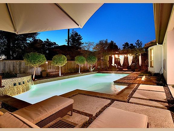 Extraordinary designer's home has professionally-selected finishes and immaculate taste exudes from every corner of house, yard, pool & outdoor living spaces! Two bedrooms down plus 3-car garage. Stunning stucco/stone home excellent curb appeal. Wood floors in main living areas. Luxurious grass cloth walls in formal dining & upstairs hall. Plantation shutters throughout. Study w/ French doors. Kitchen has oversized island with exotic granite counters, floor-to-ceiling cabinets, stainless appliances including gas cooktop, built-in oven with micro/convection, butler's pantry & wine bar. Breakfast room has built-ins w/desk. Family room has cathedral ceilings, stone fireplace, built-ins. Master has 2 vanities, granite, soaking tub, large walk-in shower w/pebble floor, mosaic accent strip. Up is game/media rooms with wet bar & 3 beds. Resort-like backyard w/lanai, arbor, fire pit, pool, wood decking surrounds pool. Other decking in salt-finished concrete 2x2ft squares w/pebbles. Generator.