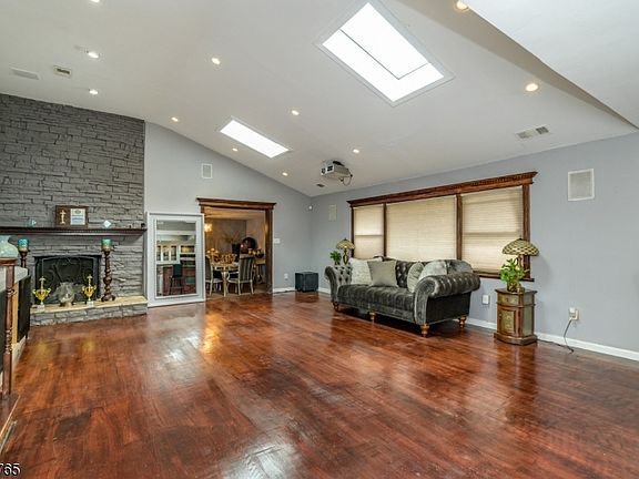 Gorgeous home w/an endless list of features! Step inside to this one of kind layout that boasts a modern aesthetic all through. The open flr plan is airy & inviting when you step inside. Sprawling LR holds a flr to ceiling F/P & it's a sunning accent. Vaulted ceilings here w/soaring skylights brighten up the space. Glistening HW flrs shine like new & expand throughout. Gourmet EIK is nothing short of amazing. Custom cabs has ample storage, 2 tiered granite center island, skylight, rec. lights & MORE! FDR is spacious & perfect for hosting. Lower Lvl FR w/attached bath is the ideal place to relax & unwind! All 4 BRs are a great size & the Main BR has it's own EnSuite. Finished bsmnt is an added bonus. 2 car garage. Large deck overlooks a spacious yard w/A/G Pool. HWH 2 yrs. CAC 2 months. Great location, too!