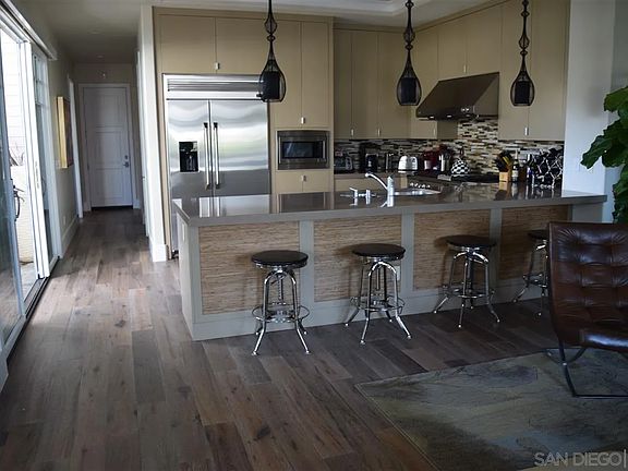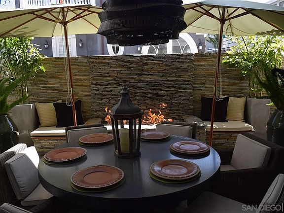 This beautifully decorated spacious home offers 4 bedrooms, 3 baths, multiple outdoor living areas, an expansive bay, and San Diego skyline views...all within walking distance of shopping, restaurants, and the award-winning Coronado beach! From the moment you walk through the front gate into the beautifully landscaped garden, you will feel right at home! The entryway opens up to hardwood flooring with an open living area where you can entertain family and friends. You will love the ambiance of the outdoor dining area as you dine "al fresco", complete with a built-in stone fireplace with a sitting area as your backdrop. Chefs will love the kitchen with stainless steel appliances, top-quality cookware, and a walk-in pantry. A large eat-in bar area is perfect for entertaining and gathering around with family and friends! Get the best of both worlds with stylish hardwood flooring on the first level and new carpeting upstairs in addition to new blinds, upgraded lighting and fresh paint throughout the entire home. The upstairs master suite features a king-size bed, flat-screen television, an en suite with an extra-large bath and soaking tub, shower, dual sinks, a bidet, and a walk-in closet. Enjoy a private deck off the master bedroom to enjoy the views with your morning coffee! The upstairs family room is a perfect getaway with french doors that open to a beautifully appointed outdoor sitting area with breathtaking sunsets. Later you can head up to the rooftop patio for unobstructed spectacular views of the San Diego Skyline and nightly fireworks throughout the summer months.