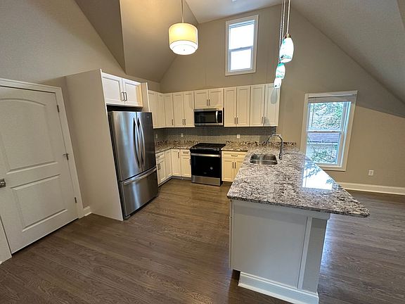 Luxurious and newly renovated, this loft style duplex boasts an array of sleek finishes and a thought-out open layout. This duplex features refinished maple flooring, new cabinets and doors, granite countertops, fireplace and a convenient in unit washer and dryer. Beyond a functional entryway space this home flows into an open-concept living, dining, and kitchen area. The galley-style kitchen is complete with granite countertops, a glass backsplash, soft close drawers and cabinets, and a suite of high-end stainless steel Whirlpool appliances. The large master suite includes a large walk-in closet. The bathrooms have tile flooring and chic Kohler fixtures. You will also appreciate the short to drive to many local restaurants, coffee shops, grocery stores, interstate access, and a number parks and preserves.