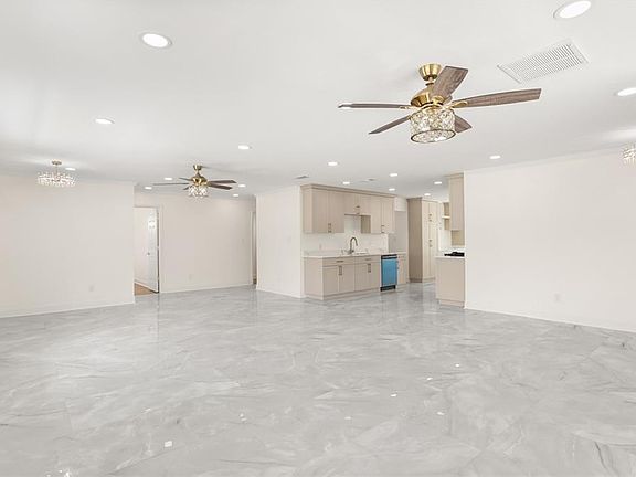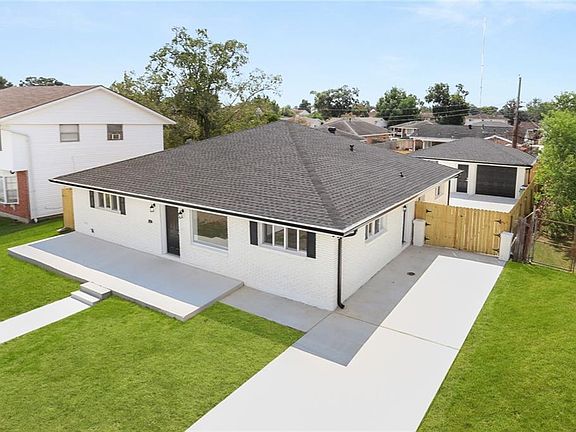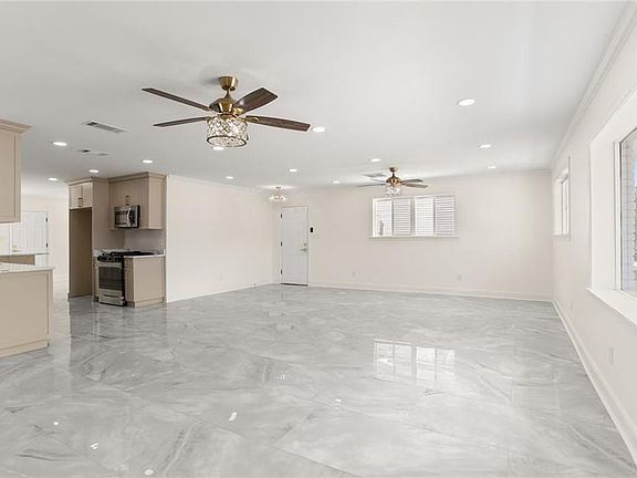 Exceptional renovation. This home has been renovated from the studs. All ne underground plumbing, New Roof and HVAC system. All wiring, boxes, outlets, switches and covers. Windows, facia, sofit and gutters are new. Insulation, sheetrock, paint doors and trim replaced. Custom painted cabinetry by NOLA. Quartz countertops. The kitchen is phenomenal a must see. Stainless appliances including dishwasher, above range microwave, and gas range oven. Oversized porcelain floor tiles throughout the living space and neutral vinyl plank wood in the bedrooms. All of the fixtures and hardware ore done in an attractive gold finish. The inside utility room measures 7 x 10.5. The posted sq footage includes the separate guest suite which is the 4 bedroom/multi-purpose room and full bath done in the same finishes as the main home. It shows in the rooms as the second primary bedroom