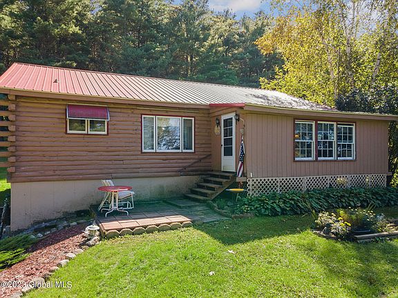 Welcome to this nice log home situated on 9.5 secluded acres with a mix of open space and woods. 3 bedrooms, 1 full bath and small half bath in basement. Open kitchen, dining, & living room concept. Newer hot water heater. Partially heated basement, with workshop and access to garage. Garage meant for storage only. 3 season enclosed front porch. Newer back deck to relax on while listening to the sounds of nature.. Great location, just less than 3 miles to the I 88 exit for easy access to capital district. ROW at end of driveway. Don't miss out on the chance to own your own log home!