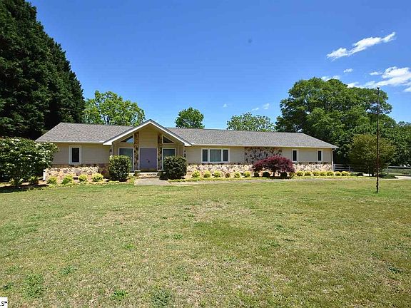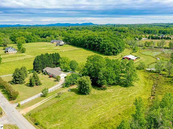 RARE FIND - Amazing 12-ACRE parcel in the heart of Taylors! This WORKING FARM has everything you need for horses and cattle fenced PASTURE, 50 x 60 BARN, cattle crush, and spring fed PONDS. This property has been worked for decades with so much pride of ownership and it really shows in the house and over the acreage. WILDLIFE abounds here and sitting on the large screen porch looking over the back pasture, you will be treated a great show. LOCATION - you will not believe you are so close to the amenities of modern life and have this kind of tranquility, plus is zoned for RIVERSIDE HS. Extensive VINYL FENCING extends from both sides up front and back around the home for a traditional look. A towering front vaulted porch with ROCKWORK give this ranch a classic look that sits back off the road with a long driveway. Inside you will find a NEW KITCHEN with GRANITE counters, subway tile BACKSPLASH, HARDWOOD floors, STAINLESS STEEL appliances, recessed lighting and pull out drawers for easy access. The dining room opens to the kitchen and features a new picture window that overlooks the back of the property nice view! Extra PANTRY space can be found in the mudroom off the garage half bath and laundry are also located here for convenience. Central to the home is a VAULTED GREAT ROOM with gas logs, custom built wood mantle on the rock fireplace, plantation shutters, and hardwood flooring. Off the great room you fill often find yourself often enjoying the SCREEN PORCH that overlooks a small vinyl fenced area- great for kids or pets. Check out the HUGE MASTER bedroom (16 x 20) with DUAL WALK-IN closets and large bathroom space featuring dual vanities. A split bedroom plan offers two more bedroom across the great room with BUILT-IIN desks and bookshelves. SIDE ENTRY GARAGE is extra-large with a storage/workshop and yard door to the back. New ROOF 2017. HVAC 2015. New vinyl CASEMENT WINDOWS 2010 for energy efficiency and ease of operation. Plenty of hot water here with 2 WATER HEATERS one for hall bath and one 80 gallon in garage for rest of the house. New INSULATION has been blown into attic. New vapor barrier in the crawl space, and all new PVC plumbing under the house. Central vac is convenient for cleaning. MORE EXTERIOR DETAILS: The DETACHED GARAGE (truck shed no door) is convenient to the house and accessed by a second driveway parallel to the main drive. This 2ND DRIVEWAY provides excellent access for farm equipment to the back pasture. Main BARN HAS POWER and a CONCRETE FLOOR in main part of the structure. There is plenty of room in this barn for several stalls. Side shed give you more covered storage. Near the barn are two ponds fed by steams excellent for watering animals. The ponds have been stocked and there is a COOKOUT SHELTER with fireplace at top of upper pond. Back left is a large TREE GROVE where animals can shelter. Exterior light on utility pole is handy for extra illumination. This home in the coveted Riverside High School district - it is ready for a new family and adventures on the farm!