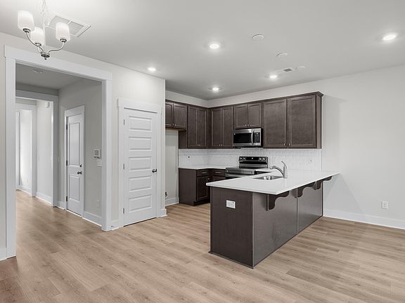 Large kitchen peninsulaGorgeous dune lvp flooringGrand tray ceilingStainless appliancesCarrara delphi quartz countertopsSpacious foyerSeparate dining area