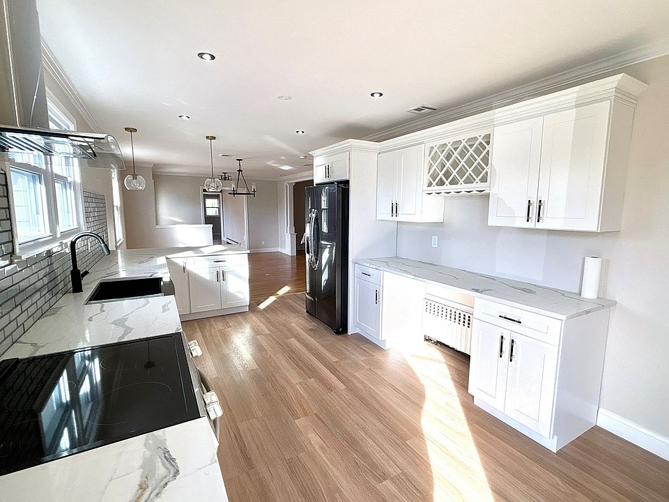 Completely renovated ranch style single family house with legal one bedroom in-law apartment with private entrance. Open floor plan. Brand new kitchens and bathrooms. Good sized bedrooms . Refinished hardwood floors through out the main house. Primary bedroom suite with walk-in closet and full bath. Large living room with fireplace. Finished basement has a huge family room with a full bathroom and an office. One brand new C/A , most windows have been replaced. Newer roof, newer boiler. Driveway with new coating, plus large parking area newly paved. Fenced in level back yard. Please note that this property has been converted from commercial use. The property tax will be reduced when the new tax bill is out, as the mill rate for commercial property is higher. Please confirm with the assessors office.