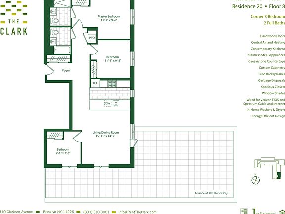 The Clark apartments (including over-sized studio, 1, 2 & 3 bedrooms) were designed with your lifestyle in mind, featuring open layouts, hardwood floors, modern kitchens complete with dishwashers and garbage disposals, central AC, and even washers and dryers in each unit.