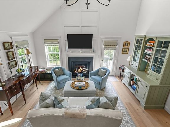 Experience refined coastal living in this exquisite end-unit townhouse in Middletown’s sought-after Whitehall Farm. This 3-bedroom, 2-bath home offers exceptional style and function, with a first-floor bedroom and full bath for easy single-level living. The gourmet kitchen boasts Cabico custom cabinetry, quartz countertops, Bosch appliances, and additional custom upper cabinets added in 2025 for both elegance and storage. Enhanced kitchen and under-cabinet lighting including a Lutron smart electrical system, a custom pantry, and coffee nook elevate the space. The cathedral-ceiling living room features a sleek new gas fireplace and opens to one of two private, hardscaped outdoor areas. Recent upgrades include a new washer and dryer, Baldwin hardware with digital front door lock, a new fiberglass front door with Andersen storm door, and extensive interior updates including flooring, moldings, closets, HVAC, and electrical all done within the last two years making this truly turn key. As an end unit sharing only a garage wall, it offers exceptional privacy, abundant natural light, and a quiet setting just minutes from Aquidneck Island’s beaches, Sweet Berry Farm, marinas, Norman Bird Sanctuary, and Newport’s vibrant dining scene.