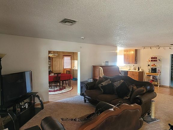 Well established home located in Aztec, just up the road from Vanilla Moose. This home includes 3 bedrooms, 2 bathroom, formal dining room with window bench seating and lots of natural lighting. There is a second living space off the kitchen that also has a sliding glass door out to the patio. The house sits on a corner lot which includes landscaped front and back yard, sprinkler/drip system on the plants, an oversized double car detached garage, lots of parking, a metal roof, and much more. Buyer to verify square footage. Sellers will allow up to $3,000 flooring allowance with acceptable offer.