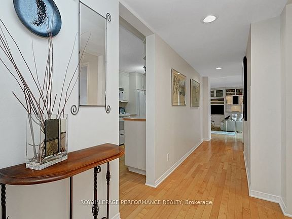 Ideally located across the street from the NCC Park, the Rideau River and steps to Beechwood Avenue in the historical district of New Edinburgh, this turn-key 1322 sq.ft 2bed+den/2bath condominium is the perfect fit for the walkable rightsizer who wants a livable apartment, a functional L-Shape floor-plan, in a low-rise intimate concrete brick building, with timeless finishes, large living spaces and lovely west views of the courtyard and greenspace across the street. Warm and inviting front foyer. Bright and airy open-concept main living area with hardwood floors, wall-to-wall west-facing windows, custom built-ins with recessed lighting, cozy wood burning fireplace, and patio door leading to oversized covered balcony with stunning sight-lines. Lovely den alcove perfect solution for the home office with built-in desk and storage. Renovated eat-in kitchen with timeless cabinetry, ceramic backsplash, and tons of storage and counter space. Spacious primary bedroom with south exposure, wall-to-wall closets with custom shelving solutions, and an updated 3-piece ensuite with glass enclosed walk-in shower and oversized vanity with stone countertops. Well-proportioned secondary bedroom. Renovated second full bathroom with soaker tub with ceramic tile surround and large vanity. Practical laundry room with extra storage. Multiple closets in hallways for all storage needs. Central A/C. 1 underground parking with direct access to storage locker. Pet friendly building. Leave the car at home, take a stroll along the River, spoil your dog at Stanley Park, walk down Beechwood Avenue where there's an abundance of local shops, restaurant and tasteful retail options, go for a bike ride onto Ottawa's expansive bicycle path network, and then come home to your quiet abode.