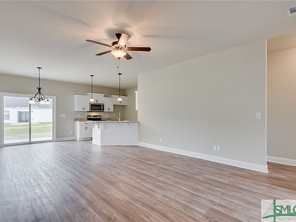BETTER THAN NEW! This Ranch-style "Creston" by Keystone features 1,550 sq. ft. of living space with 3 bedrooms plus a flex room with glass French doors off the living room. Stacked Stone exterior around the garage adds the perfect touch to this home. The Owner’s suite includes dual vanities with granite countertops, separate shower and garden tub with tile surround, oil rubbed bronze fixtures, framed mirrors and walk-in closet. The spacious kitchen features white cabinets, granite countertops, stainless steel Whirlpool appliances, and breakfast bar with pendant lighting and large dining area. Enjoy LVT flooring with hardwood-look in main living areas. a covered rear patio that overlooks the pond is the perfect way to spend a relaxing evening watching the sun set or enjoying your morning coffee. 2-car garage with auto-opener and fully sodded front and side yard with irrigation.