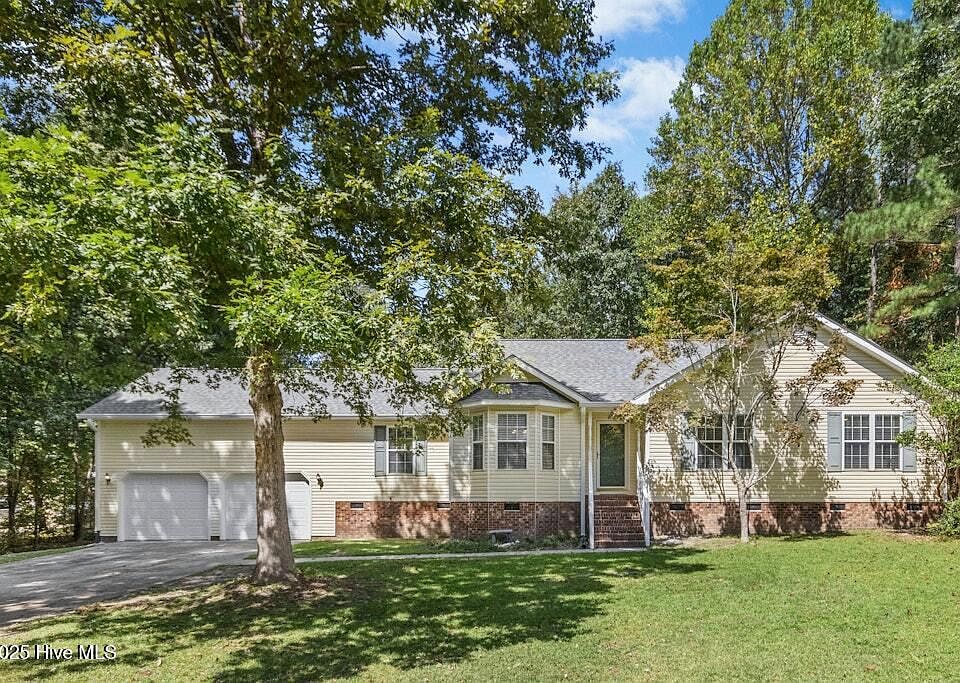 Welcome home to this beautifully updated one-level RANCH featuring NEW SHINGLES and loads of interior updates. A two-car attached garage and a welcoming sidewalk leading to the covered front porch provide both convenience and curb appeal. Inside, a foyer opens to the spacious family room with soaring ceilings and a cozy fireplace. The large kitchen offers new flooring, a bright breakfast area, built-in pantry cabinets, previous owner updated countertops, and included appliances—refrigerator, stove, microwave, and dishwasher. A formal dining room (or office/flex space) sits just off the kitchen. The private primary suite features NEW CARPET, fresh paint, and a bath with UPDATED countertops, fixtures, and lighting. Two additional bedrooms and an hall bath with tons of updates, provide ample space for all. A versatile bonus room offers a separate living room, office, or hobby space...you choose the use. A walk-in laundry room equipped with washer and dryer already in place and with shelving adds convenience. Outside, enjoy the private backyard with a new deck and a patio—perfect for relaxing or entertaining. Welcome home