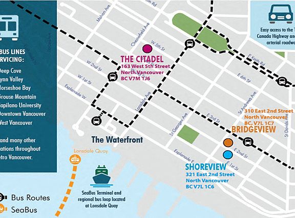 Citadel, Bridgeview and Shoreview are located in the heart of North Vancouver in the desirable Lower Lonsdale community. Within a 10 minute walk to the North Vancouver Museum, Victoria Park and the famous Lonsdale Quay Market! They are also located close to schools, The Capilano Mall, restaurants, coffee shops, public transit are all nearby for your convenience. They all offer fully renovated one and two bedroom suites. The Shoreview also offers two bedroom plus den apartments. All 3 buildings have luxury vinyl plank flooring throughout; 4 brand new stainless steel appliances, mirrored closet doors, brand new blinds, countertops, and baseboards! Select suites in Shoreview include a fireplace to stay warm in the colder months. The suites also have their own private balcony to enjoy the amazing views and heat and water are included to help make budgeting easier!