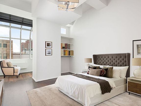 Welcome home to this one-of-a-kind well proportioned one bedroom with separate home office or sitting area. It captures loft-life living with a European flair in the heart of Midtown. This renovated residence is perched on a high floor flooded with Southern exposure enjoys sweeping magnificent city views including the iconic Chrysler Building and the top of the Empire State Building through a wall of greenhouse windows with custom electric solar shares. The chef's kitchen features stainless steel appliances and is complimented beautifully with Italian marble countertops. The luxurious spa bathroom is brilliantly decorated with floor to ceiling mosaic tiles, a rain shower head, cascade bath spout, and double sinks. This breathtaking home boasts walnut wood flooring, abundant closets throughout, antique Primary Bedroom oak wood door from the south of France and approximately 12 foot ceilings.