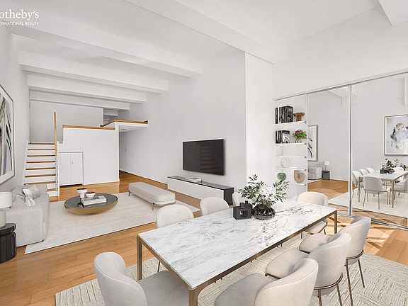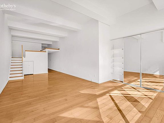 The home features soaring 12.5-foot pre-war beamed ceilings and an expansive layout that includes a generously sized living and dining area, ideal for both entertaining and everyday relaxation. The smartly designed standing sleep loft adds versatility, with extensive built-in storage underneath, perfect for keeping your home organized and clutter-free. You’ll also find ample closet space throughout, offering rare and valuable storage in a city setting. The kitchen features granite countertops, The clean and modern bathroom is engulfed in white porcelain tiles.