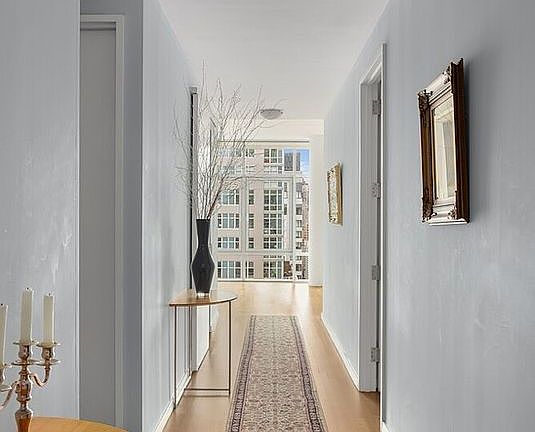 Building amenities include a 24-hour doorman, concierge, resident manager, fitness center, bike room, landscaped courtyard, and on-site parking garage (for an additional fee). The building is pet-friendly.