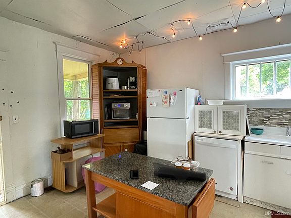 So much potential with high ceilings and large windows and great space. The main floor has a kitchen at the back of the home, a dining room leading you to a front facing living room. There is also a main floor bedroom and a half bathroom. The upper level is a mirror image of the lower level. The room at the back is used as a laundry room with a bonus sitting area opening to a front bedroom (living area). An additional bedroom and bathroom finish the space. The home was once used as a duplex but is now a single family and zoned general residential. There is no driveway/off street parking so no having to keep it clear of snow!