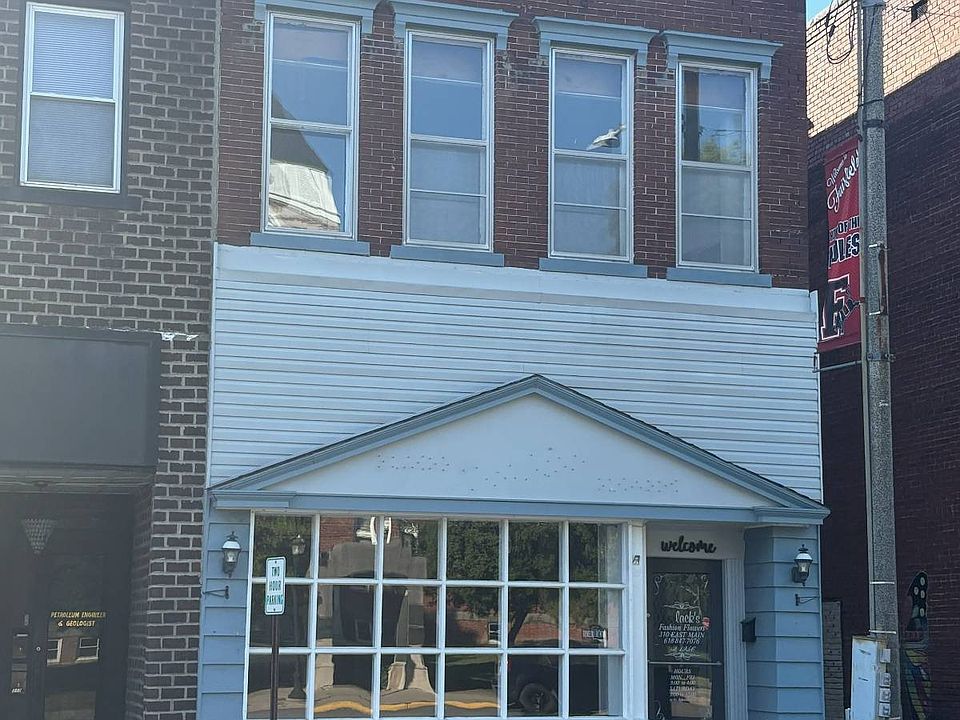 Two for the price of one......A prime downtown commercial brick building with a fully updated upstairs apartment! The spacious 1,350 sq ft apartment features 2 bedrooms, a remodeled bathroom (2021), a bright living room with large windows overlooking the courthouse on Main Street, an eat-in kitchen with all appliances included, and a large utility room. Freshly painted and updated, it's move-in ready. The main level, also 1,350 sq ft, offers a versatile showroom, a storage room, a convenient half bath, and a walk-in cooler, perfect for retail or business ventures. The basement provides additional storage, a boiler heater, and a new water heater (2024). With a new rubber roof (2024) and a total of approximately 4,050 sq ft across all levels, this property is a rare opportunity for investors or owner-occupants seeking a blend of commercial and residential potential in the heart of downtown. Don't miss out on this exceptional value!