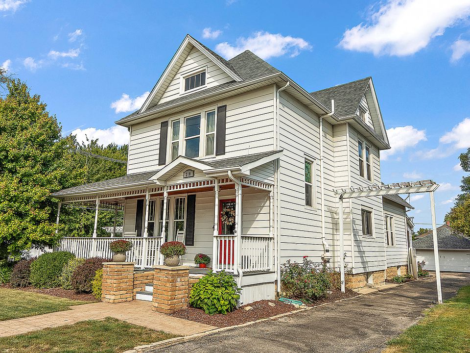 Check out this stunning vintage home featuring 4 beds and 3 full baths in downtown Manhattan! Main floor features grand foyer with ceramic flooring and original staircase with detailed wood work! Original 10 inch baseboards through out! Large formal living room with 9 ft ceilings and crown molding! Elegant formal dining room with hardwood floors, updated fixture and is large enough to host all the holidays! Pocket door leads to updated kitchen featuring center island breakfast bar, SS appliances, ceramic tile backsplash with loads of cabinets! Warm and inviting family room and private den with french doors and trey ceilings! 1st floor gorgeous full bath recently updated with clawfoot tub, shiplap and updated fixtures! Light and Bright 3 season room overlooks private yard! 2nd floor features 4 true generously sized bedrooms with original transom windows! Large primary suite with updated flooring plus updated private full bath with double sink vanity and ceramic tile floor and shower! 2nd floor full bath is updated too with double vanity and ceramic tile floors! Full basement for storage! Exterior features hard to find wrap around covered front porch with canned lighting creates a perfect space to watch the local parade! Back yard is totally fenced with large deck for entertaining, above ground pool plus detached rock solid two car garage with attached work shop! Side drive with plenty of guest parking. Great location...walk to everything downtown Manhattan has to offer! This home offers the perfect blend of charming character with modern conveniences all in a one of a kind location--don't miss it!