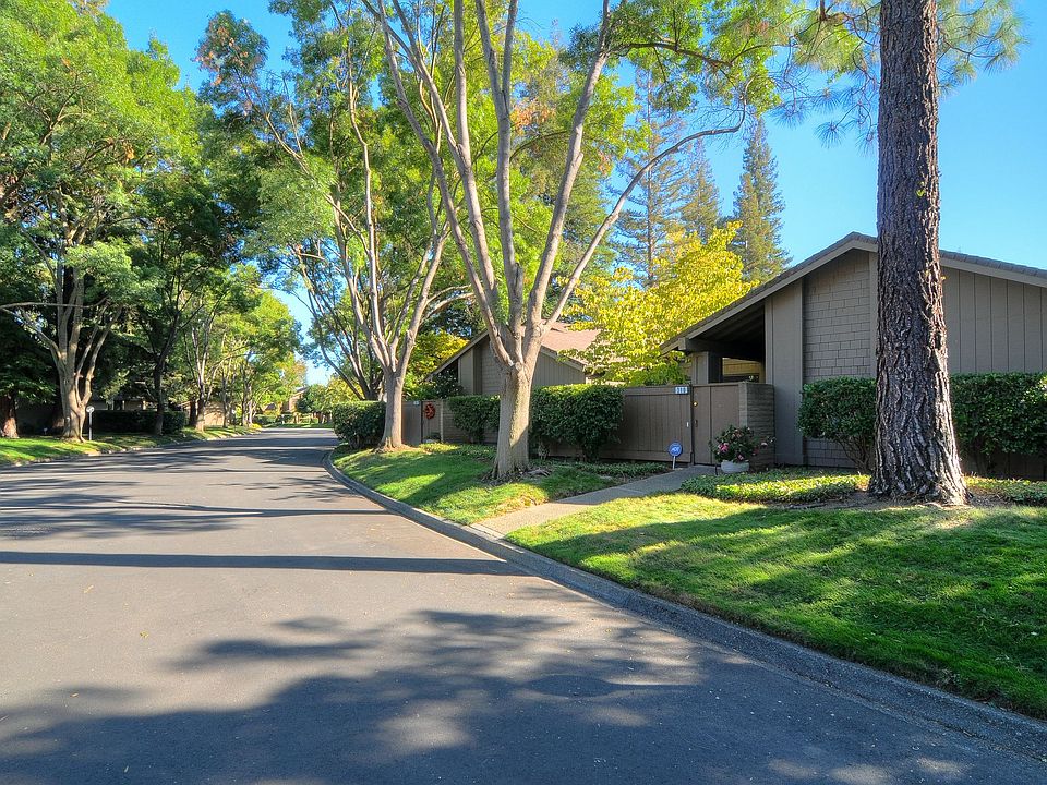 $10,000 Price reduction on thishard to find East Ranch single-level unit! A private courtyard invites you into this lovely 2 bedroom, 2 bath. Wood burning fireplace & vaulted, beamed ceilings in living room. Formal dining room + eating space in the kitchen. Kitchen and both baths have been updated. Additional courtyard off kitchen. Owner enclosed a former patio off the master bath creating space for a treadmill & TV. Inside laundry, skylight, solar tubes, attached two car garage. See it today.